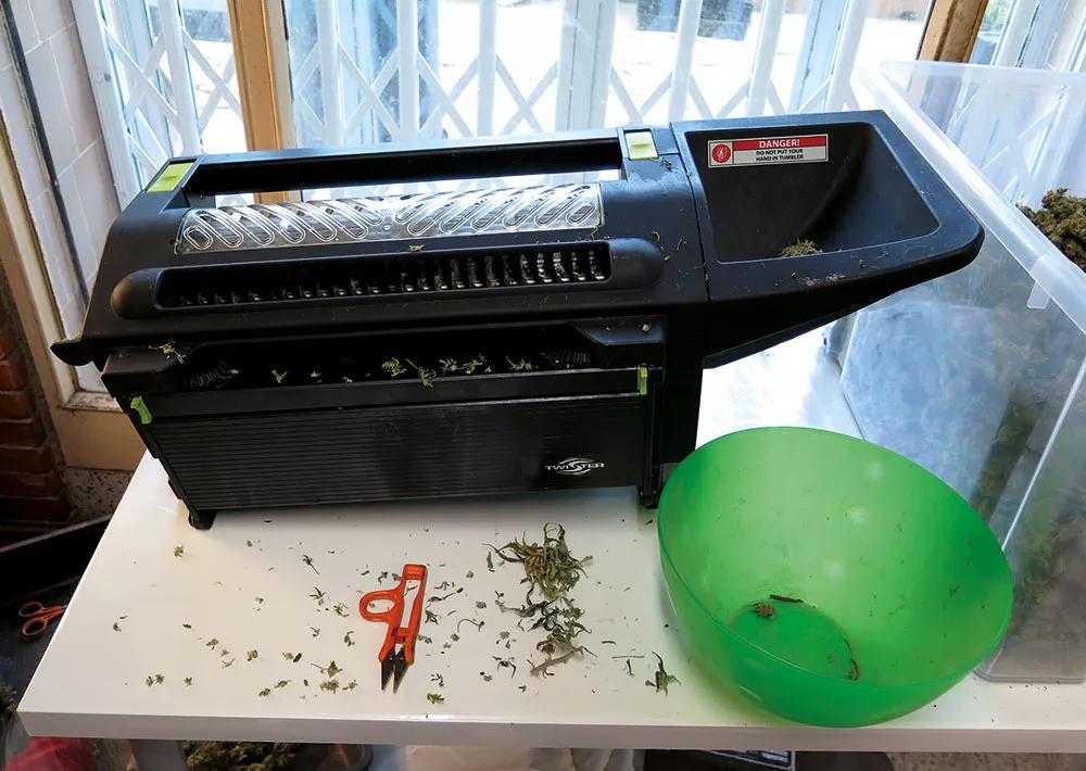 La mejor forma de secar las plantas de cannabis es colgando las ramas de cuerdas como si fueran calcetines tendidos tras la colada. Las ramas se tienden boca abajo porque de ese modo los cogollos quedan con mejor forma y más bonitos que si se extienden sobre una superficie. No hacen falta pinzas para sujetarlas en las cuerdas, basta con usar una ramita secundaria para engancharlas. También es un buen sistema cortar cada rama junto a un trozo del tallo central para usar este como gancho. Según la disposición y el tamaño del espacio disponible como secadero, se pueden poner cuerdas de pared a pared para colgar las plantas, usar secaderos plegables de los que se venden para secar la colada dentro de casa o comprar un secadero de malla especial para cannabis. Estos últimos parecen estanterías de tela de malla en las que los cogollos se ponen a secar una vez separados de las ramas. Tienen varias ventajas: el secado es muy rápido y permiten secar bastantes cogollos en poco espacio; y algunas desventajas: los cogollos se aplastan un poco porque no están colgados y para evitarlo hay que darles la vuelta cada día; además, hay que ir separándolos de las ramas conforme se manicuran, lo que alarga un poco el proceso de cosecha, aunque es un trabajo que ya queda hecho y que en otras formas de secado hay que realizar una vez los cogollos están secos.