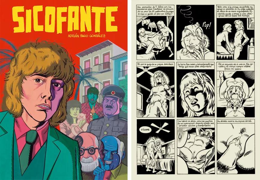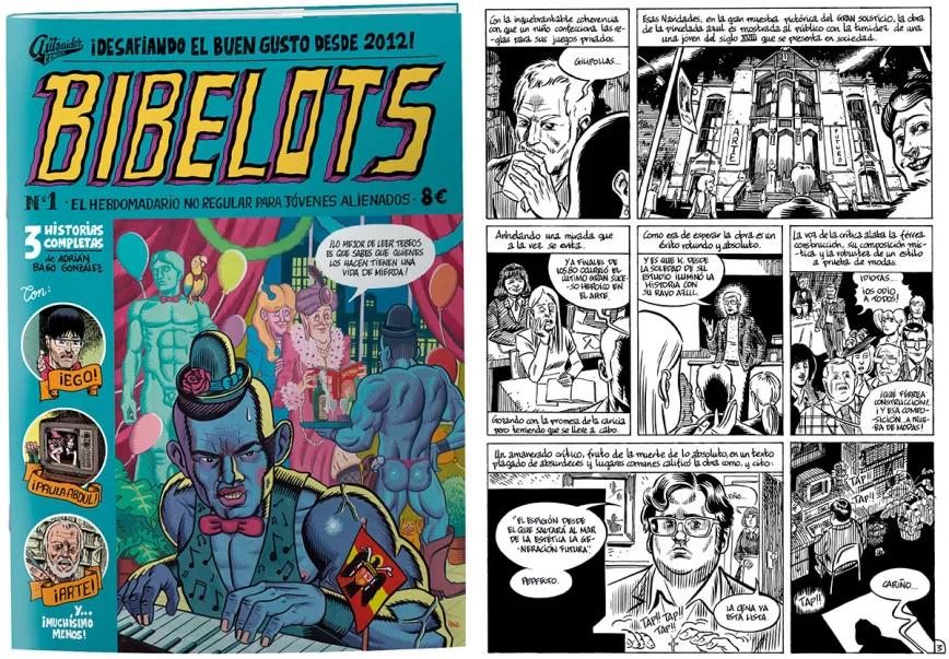 El tema de los títulos tiene su intríngulis, no te creas. No es algo que me obsesione, pero me gusta que sean sonoros y que representen bien al tebeo. No los pongo al empezar, simplemente voy haciendo el cómic y hay un día que se me ocurre el nombre perfecto. Sí que es cierto que son palabras rebuscadas, lo que pasa es que cuando leo me voy apuntando palabras que me llaman la atención para poder usarlas más adelante; en el caso de sicofante, es una palabra que se usa mucho en las traducciones que hace Carlos Manzano de las novelas de Henry Miller, y bibelots, pues saldría en alguna novela francesa, de Proust o de Balzac lo más seguro.