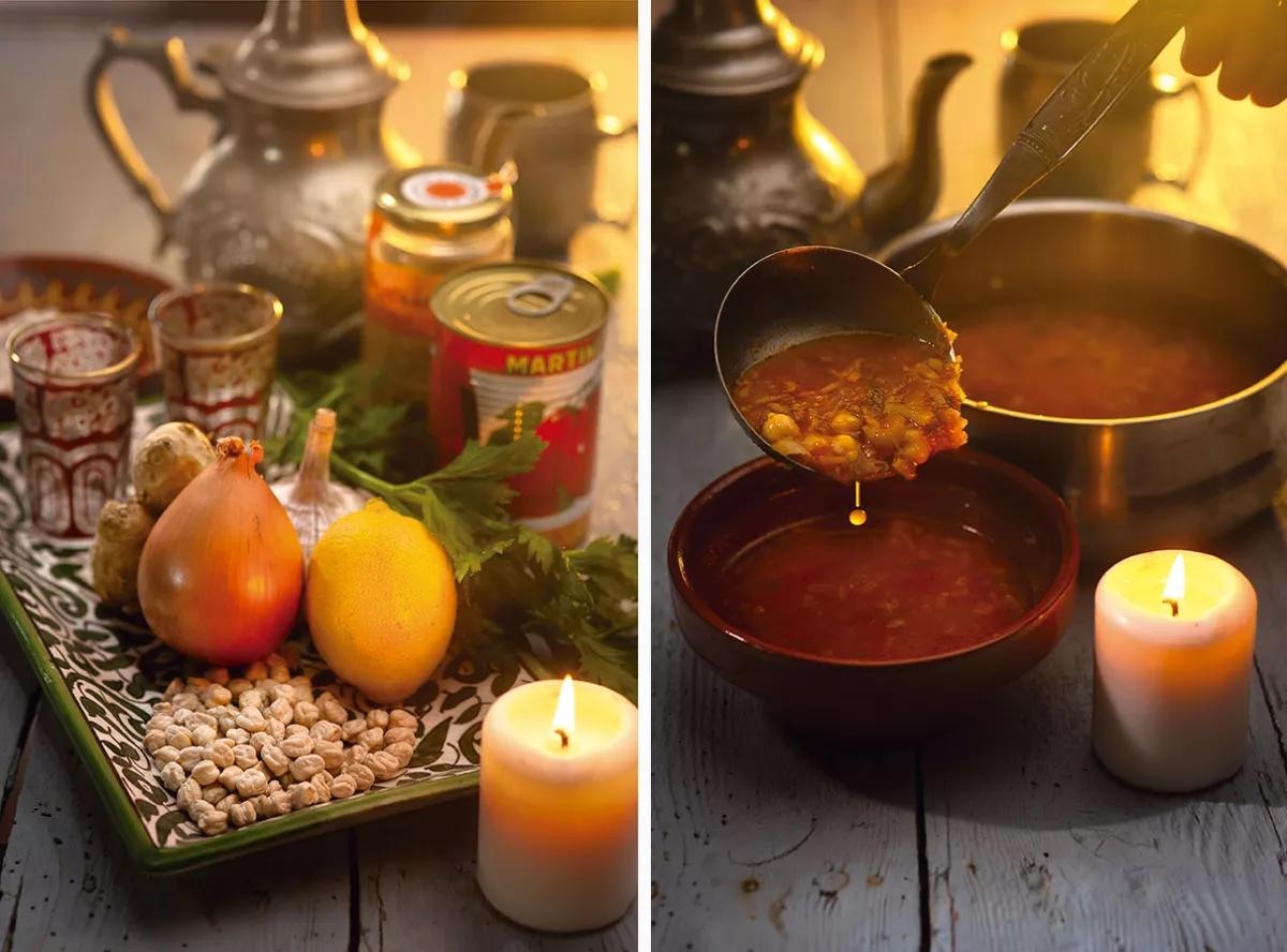 Hay pocas elaboraciones mejores que esta para comenzar el año calentitos y recuperados de las fiestas. Esta nutritiva sopa es famosa y tradicional en todo el Magreb; la usan en celebraciones como las bodas, donde se les ofrece a los invitados antes de irse a la cama, así como a las novias al día siguiente por su poder reconstituyente, aunque es en el Ramadán cuando la preparan por la noche en todas las casas, para reponer las energías perdidas durante el día en el ayuno.