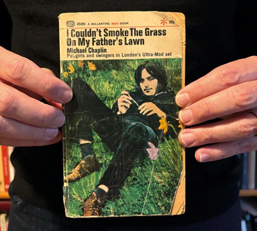 Ejemplar de I Couldn’t Smoke The Grass On My Father’s Lawn (Michael Chaplin. Ballantine Books, NY, 1966) del articulista.