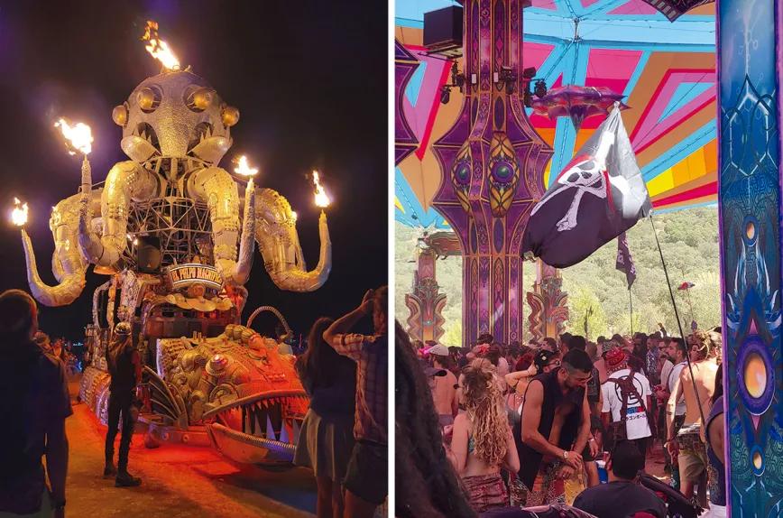 Cada año tanto Boom como Burning Man tienen un lema. En esta ocasión el de Boom fue Commit to awaken the world (‘Comprométete a despertar al mundo’) y el de BM fue Waking dreams (‘Sueños lúcidos’). Boom y BM son dos espacios muy diferentes, pero ambos son espacios psicodélicos, en los que no hay barreras entre desconocidos, con una energía compartida y un espíritu de confianza y colaboración entre los asistentes. BM es un fenómeno culturalmente muy americano y Boom es parte de la cultura visionaria global del psytrance, pero que tienen canales de comunicación y se reconocen entre sí. Curiosamente, en los inicios de BM había mucho goatrance y psytrance, y allí solía pinchar Goa Gil, el legendario hombre sagrado del psytrance, mitad sadhu mitad dj, todo LSD. Al final se trata de que todo esto sirva para algo positivo y de hallar el lugar en el que nos sintamos más cómodos para poder disfrutar de la experiencia psicodélica o, simplemente, encontrar un festival donde aprender algo nuevo e inspirador para crecer como personas y poder mejorar el mundo con una nueva mirada.