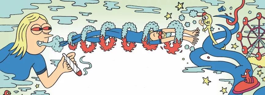 La cárcel es la única atracción de la feria que tiene sentido una vez has atravesado el círculo de humo y fuego y has abierto las puertas de la percepción sensorial pero también emotiva. La cárcel es una plataforma con cuatro celdas y capacidad para tres o cuatro personas cada una y, cuando el feriante da la orden, una grúa tan alta como cinco pisos eleva la plataforma y la gente –tú también eres gente ahora– empieza a subir y bajar y a precipitarse en el vacío. Ahora eres inmortal, ingrávido e inconsútil. Ahora eres todo uno y también eres una máquina de fabricar carcajadas por efecto del miedo-no-miedo. El miedo-no-miedo es un proceso neuronal que inhibe el músculo de la no-risa. Si no fuera por ese músculo, los humanos estaríamos todo el tiempo riéndonos como criaturitas. Algunos expertos se refieren a ese músculo como el esfínter de la risa. El miedo-no-miedo es el miedo que tienes cuando tienes miedo pero en el fondo sabes que A TI no te va a pasar nada. También se conoce como Miedo-Freddy-Krueger o semimiedo.