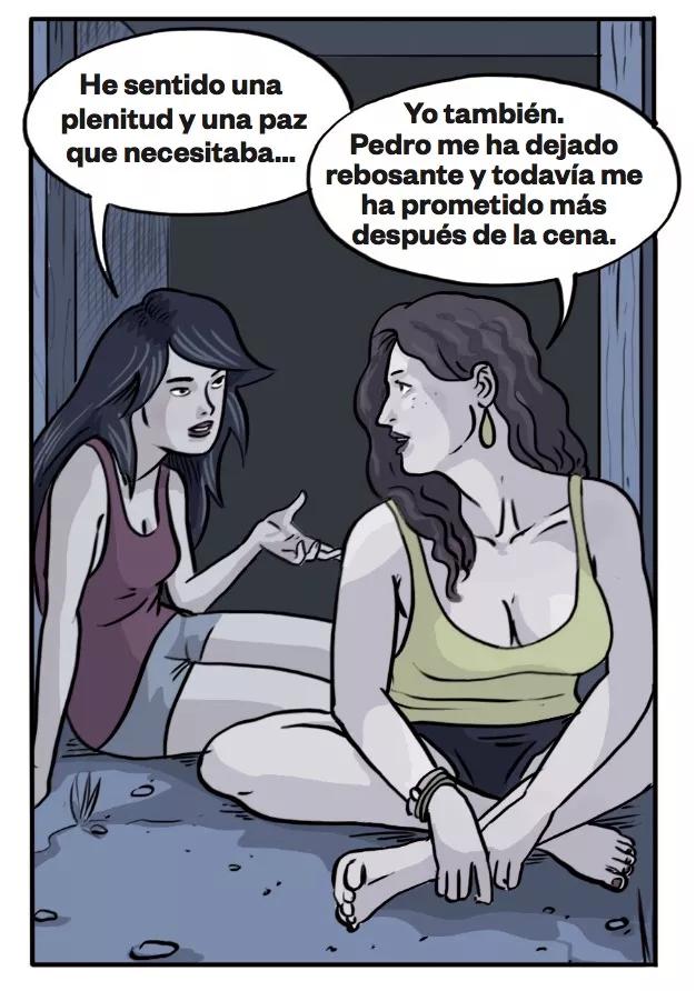 Está claro que Domingo es el gurú de esta comunidad. Y Miriam también. Por algunos comentarios y por cómo se miran he creído que hay algo más entre ellos de lo que tienen cada uno por su lado con otros y con otras. He intentado hablarlo con Miriam, pero se ha reído de mí y me ha llamado antigua. “Te ha servido de muy poco haber estudiado tanto. La Trini es mil veces más moderna que tú”, me ha dicho mientras me daba un abrazo de esos que duran más de la cuenta.