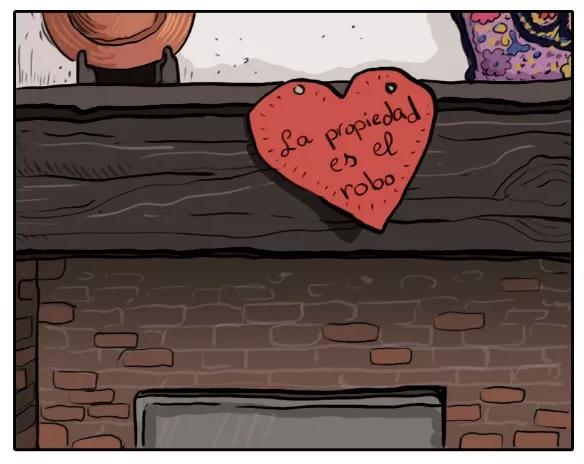 Son once y Gertru, una de las siete chicas, que está embarazada de uno de los cuatro hombres. En realidad, uno de los tres, porque Mariano es gay total. La casa es muy grande y a la Trini y a mí nos han dejado para dormir lo que llaman el chill out, una habitación con el suelo lleno de colchones. “Seguro que aquí es donde montan todas las orgías”, me ha comentado la Trini con entusiasmo. Miriam está delgada, casi diría que flaca, y se la ve muy contenta. Aquí, si una pregunta por quién está con quién, te arriesgas a que te suelten el discurso del poliamor en contra de la pareja, ese invento del romanticismo. Parece broma, pero en la cocina, sobre la chimenea, hay un corazón pintado con un lema en su interior: “La propiedad es el robo”.