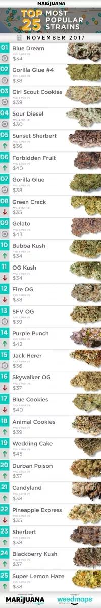Weedmaps nos trae la lista de lo más vendido, buscado, adquirido en los EE.UU. durante noviembre de 2017.