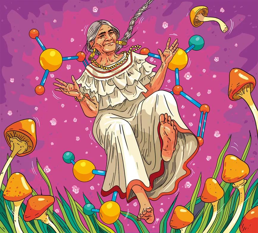 Como es natural, esta absurda disyuntiva entre lo natural (bueno) y lo químico (malo) también ha encontrado acomodo en el mundo de la droga. Incluso más, si me apuran. No resulta raro que cualquier pintamonas random sostenga contra toda lógica que prefiere los hongos psilocibes a la psilocibina sintética en polvo, por ser más natural. Otro tanto dirá, ese u otro cantamañanas desinformado, a propósito de los botones de peyote frente a la mescalina pura elaborada en un laboratorio. Es triste tener que recordarles que el universo no es más que un laboratorio infinito en el que, constante y eternamente, están sucediendo reacciones químicas como ellos sin duda habrán atisbado arrobados más de una vez en la rave. La cosa que pasa es que el hígado, o la barrera hematoencefálica, no distingue sus botones de peyote y se limita a procesar con naturalidad la 3,4,5-trimetoxi-β-feniletilamina ingerida. Del mismo modo que cuando usted ingiere sus hermosos hongos del género Psilocybe su organismo no pregunta su origen, se limita a transformar esa psilocibina en psilocina, es decir, en 4-hidroxi-N,N-dimetiltriptamina, que es lo que a usted le sube. Recordemos, que nunca está de más, el viaje de Albert Hofmann a México, en 1963, para tomar hongos sagrados –“Niños Santos”, como los llamaba ella–, con la legendaria chamana mexicana María Sabina: en aquella época del año no había hongos y habían agotado su reserva de setas desecadas, pero Hofmann le entregó unas cápsulas de psilocibina pura que había sintetizado personalmente para la ocasión; María Sabina tomó sus cápsulas (necesitó 30 mg), se cogió su tremendo pedo habitual, dirigió la sesión sanadora hasta que llegó el plateado amanecer mazateco, y entonces se volvió a Hofmann con sus pupilas refulgentes y una gran sonrisa natural en su cara hecha de curtidos pliegues. ¡Sus Niños Santos estaban en las capsulitas!